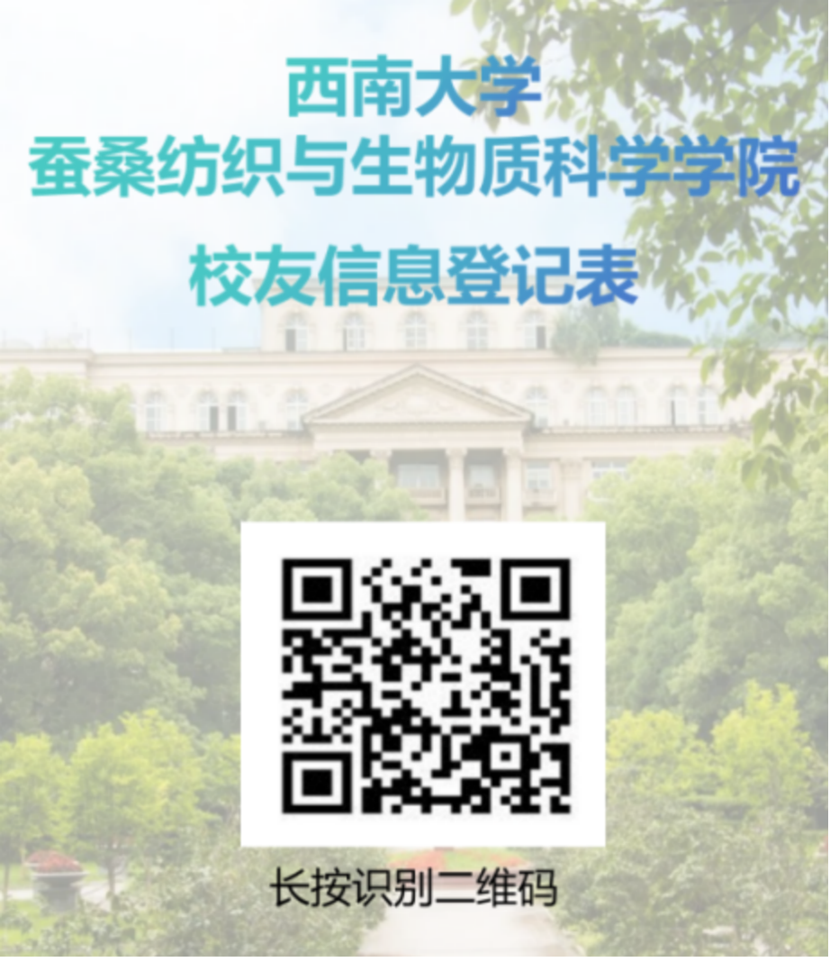 邮寄地址:重庆市北碚区西南大学蚕桑纺织与生物质科学学院33-109校友联络办公室